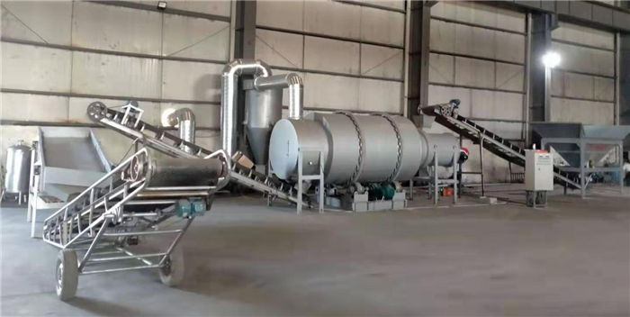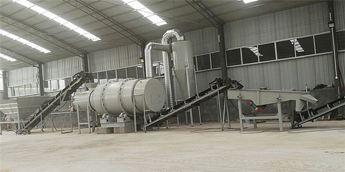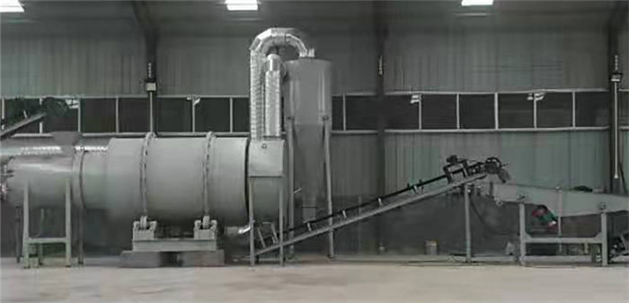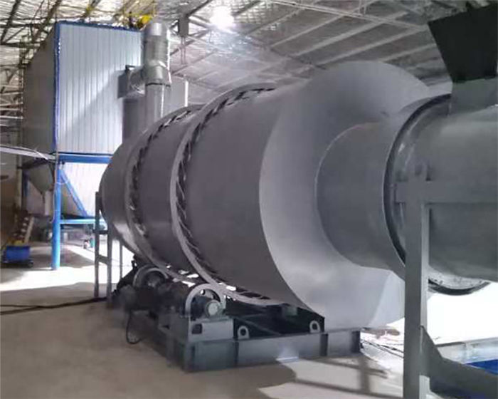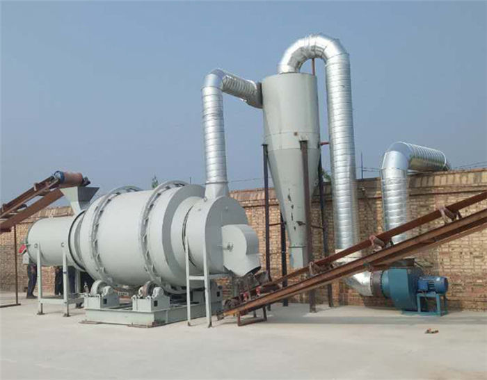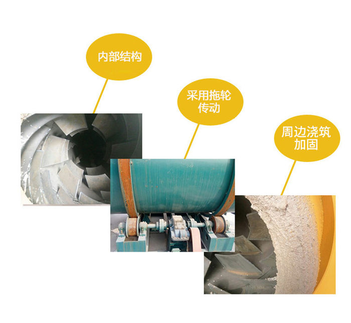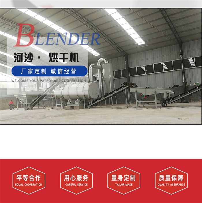 該烘干機(jī)工作原理:物料由供料裝置進(jìn)入回轉(zhuǎn)滾筒的內(nèi)層,實(shí)現(xiàn)順流烘干,物料在內(nèi)層的抄板下不斷抄起、散落呈螺旋行進(jìn)式實(shí)現(xiàn)熱交換,物料移動(dòng)至內(nèi)層的另一端進(jìn)入中層,進(jìn)行逆流烘干,物料在中層不斷地被反復(fù)揚(yáng)進(jìn),呈進(jìn)兩步退一步的行進(jìn)方式,物料在中層既吸收內(nèi)層滾筒散發(fā)的熱量,又吸收中層滾筒的熱量,同時(shí)又延長了干燥時(shí)間,物料在此達(dá)到干燥狀態(tài)。物料行至中層另一端而落入外層,物料在外層滾筒內(nèi)呈矩形多回路方式行進(jìn),達(dá)到干燥效果的物料在熱風(fēng)作用下行進(jìn)排出滾筒,沒有達(dá)到干燥效果的濕物料因自重而不能快速行進(jìn),物料在此矩形抄板內(nèi)進(jìn)行充分干燥,由此完成干燥目的。